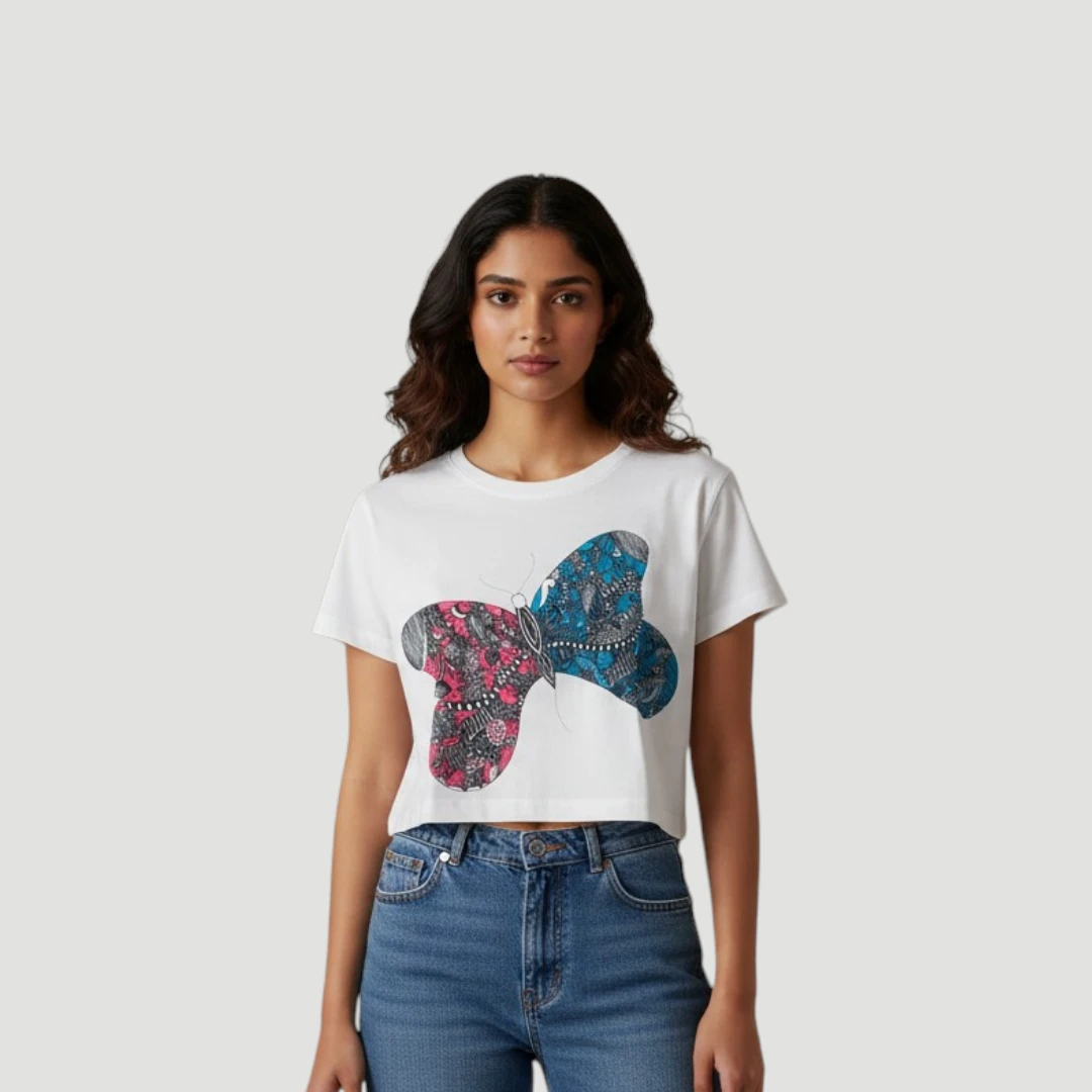- Features a beautiful and colorful butterfly doodle printed from an original hand-drawn artwork by Pooja (the founder and the artist of the brand).
